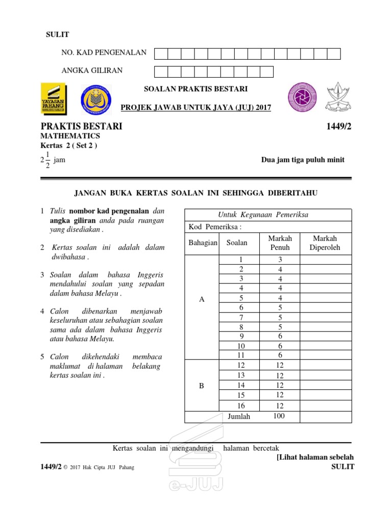 Skema jawapan bahasa melayu 1 trial 2012. Projek jawab untuk jaya (juj) 2017. Soalan percubaan spm 2017 matematik tambahan negeri perak. View flipping ebook version of skema jawapan juj 2019 yayasan pahang pahang: