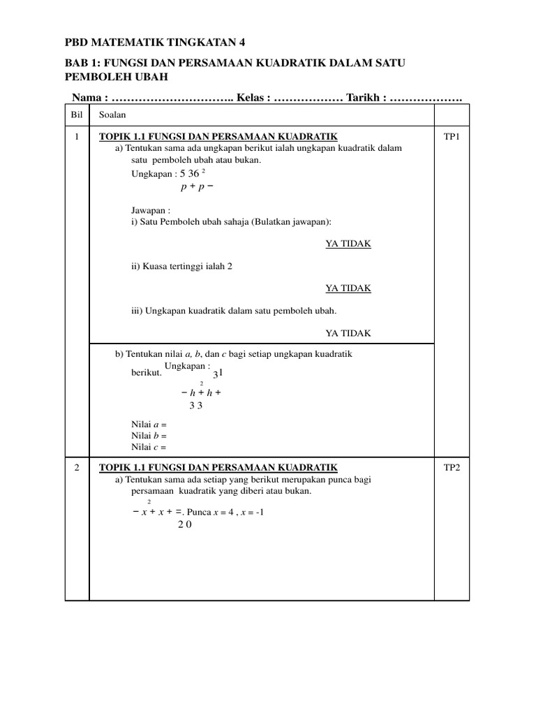 Pbd Matematik Tingkatan 4 Bab 1. Dalam bahasa melayu (bm) dan bahasa inggeris (english). Modul soalan dlp matematik tingkatan 5 bab 4 + jawapan (f) (mel) 1.